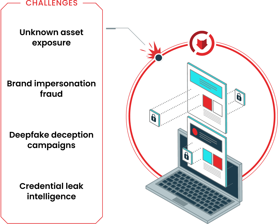 Threat actors weaponize blind spots across synthetic media, brand impersonations, forgotten assets, and credential leaks. Security teams chase alerts in silos while adversaries continuously map your full attack surface. Without advanced AI discovery, critical exposures stay hidden until exploited. ZeroFox reveals what others miss.