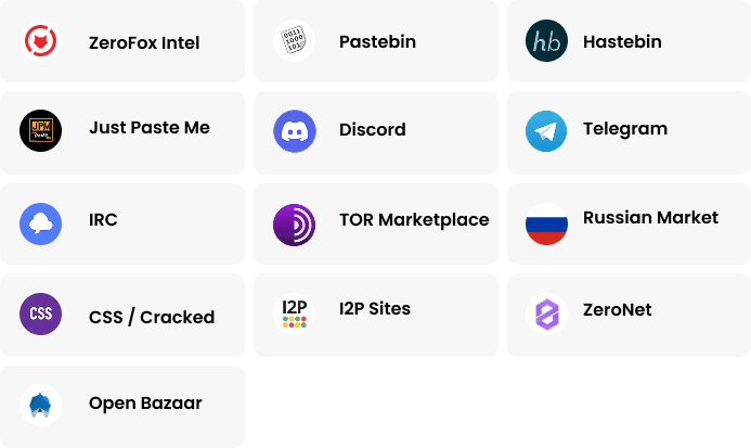 Gain visibility into threat actor communications, stolen data sales, and fraud coordination across dark web marketplaces, paste sites, and encrypted messaging, including proprietary ZeroFox intelligence.