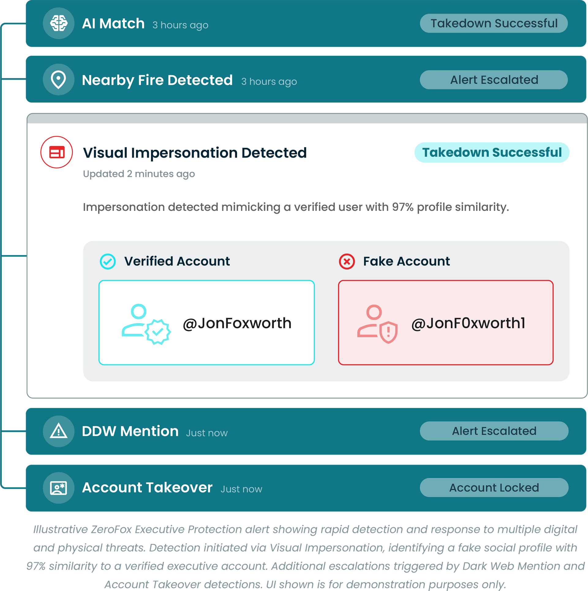 ZeroFox combines unparalleled coverage, advanced detection, and seamless response to disrupt threats targeting executives at scale. We empower security teams to safeguard executives and VIPs with confidence in an era of digital and physical risk convergence.